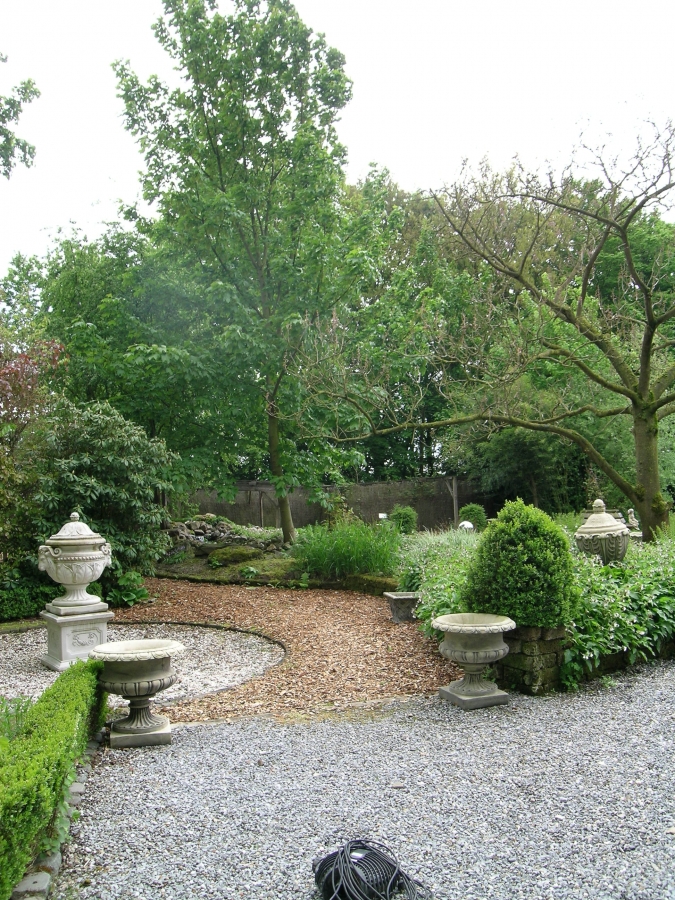 Zicht op onze tuin. Onze Paulownia tomentosa- de keizersboom, is hier nog zonder blad.